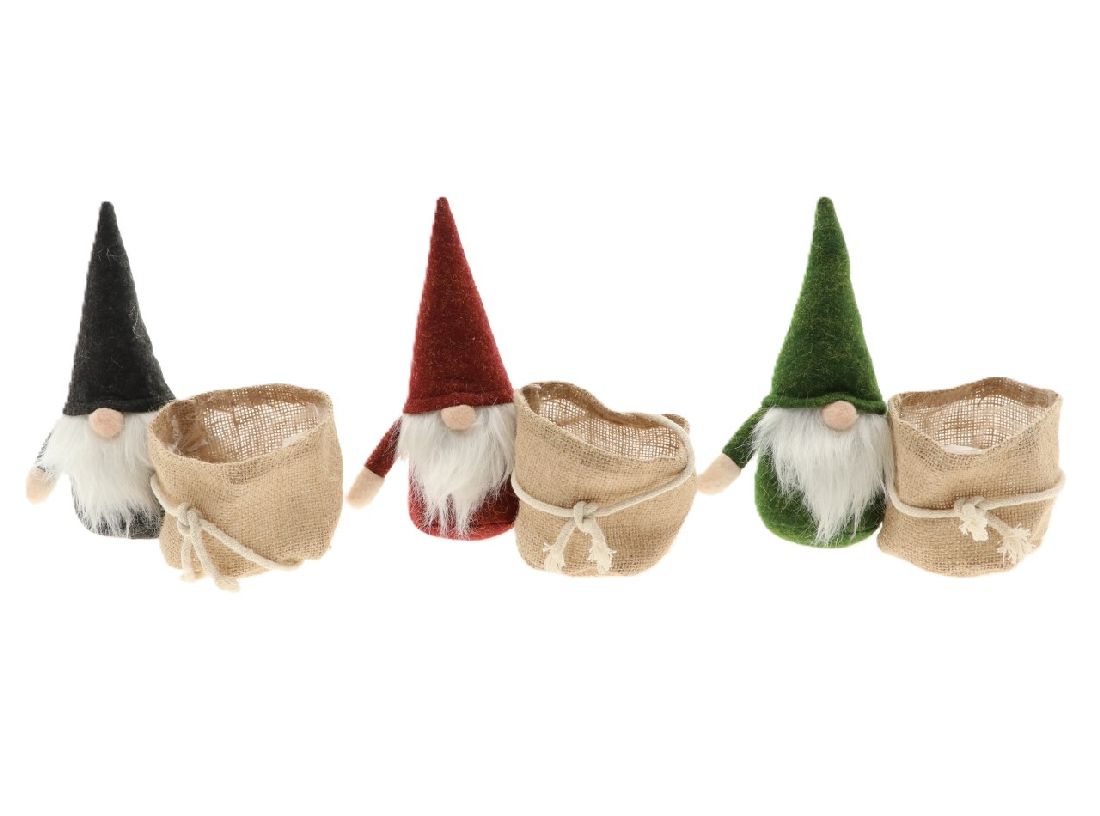 Jute Pflanztasche mit Wichtel rot-grau-grün 862511054 Ø10cm H8cm Wichtel=9x20cm